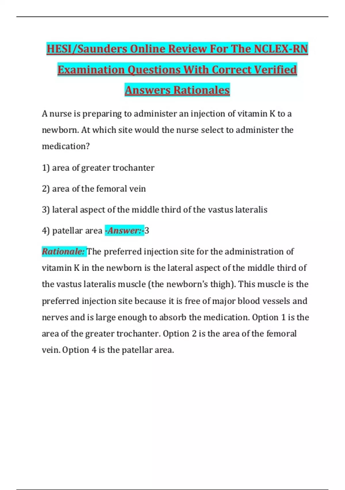 newborn. At which site would the nurse select to administer the