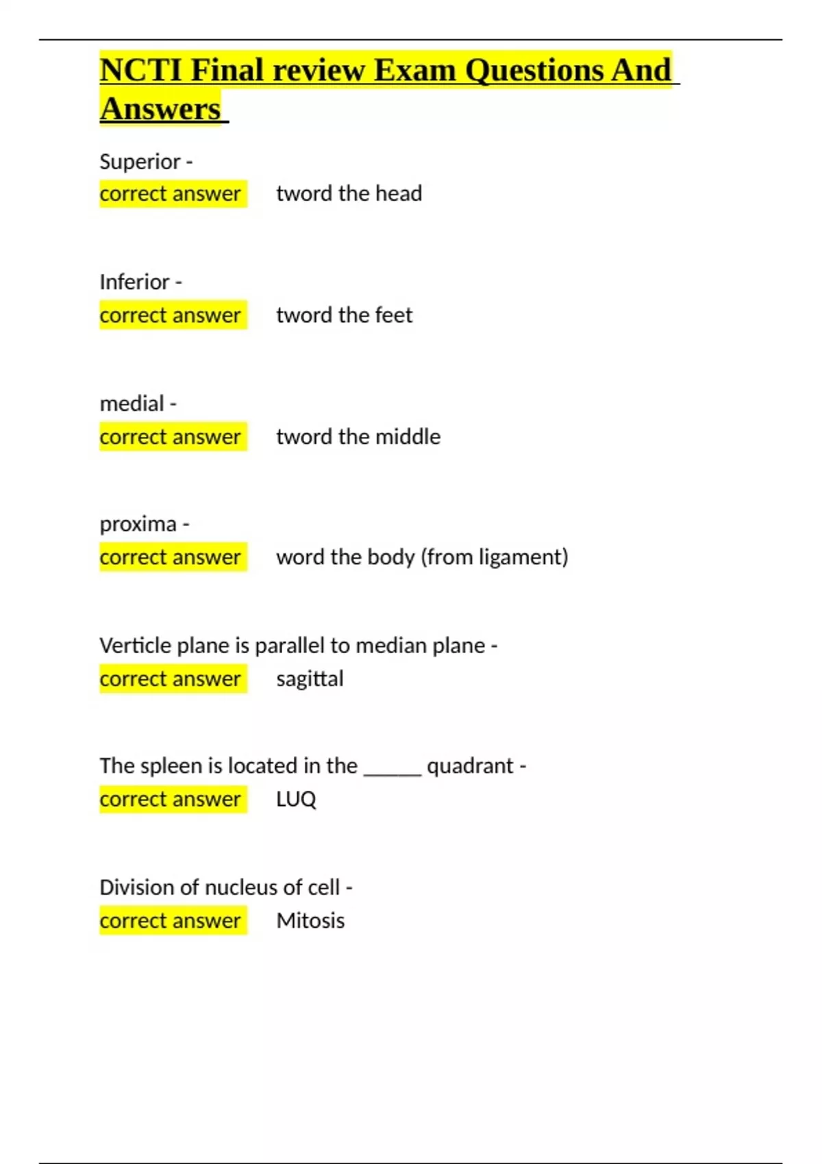 NCTI Final review Exam Questions And