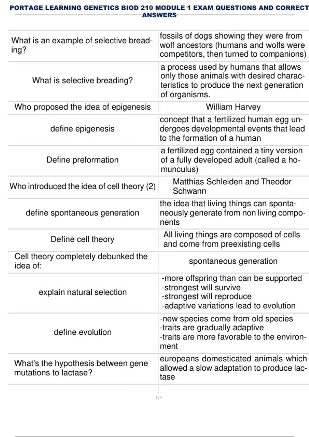 PORTAGE LEARNING GENETICS BIOD 210 MODULE 1 EXAM QUESTIONS AND CORRECT ANSWERS