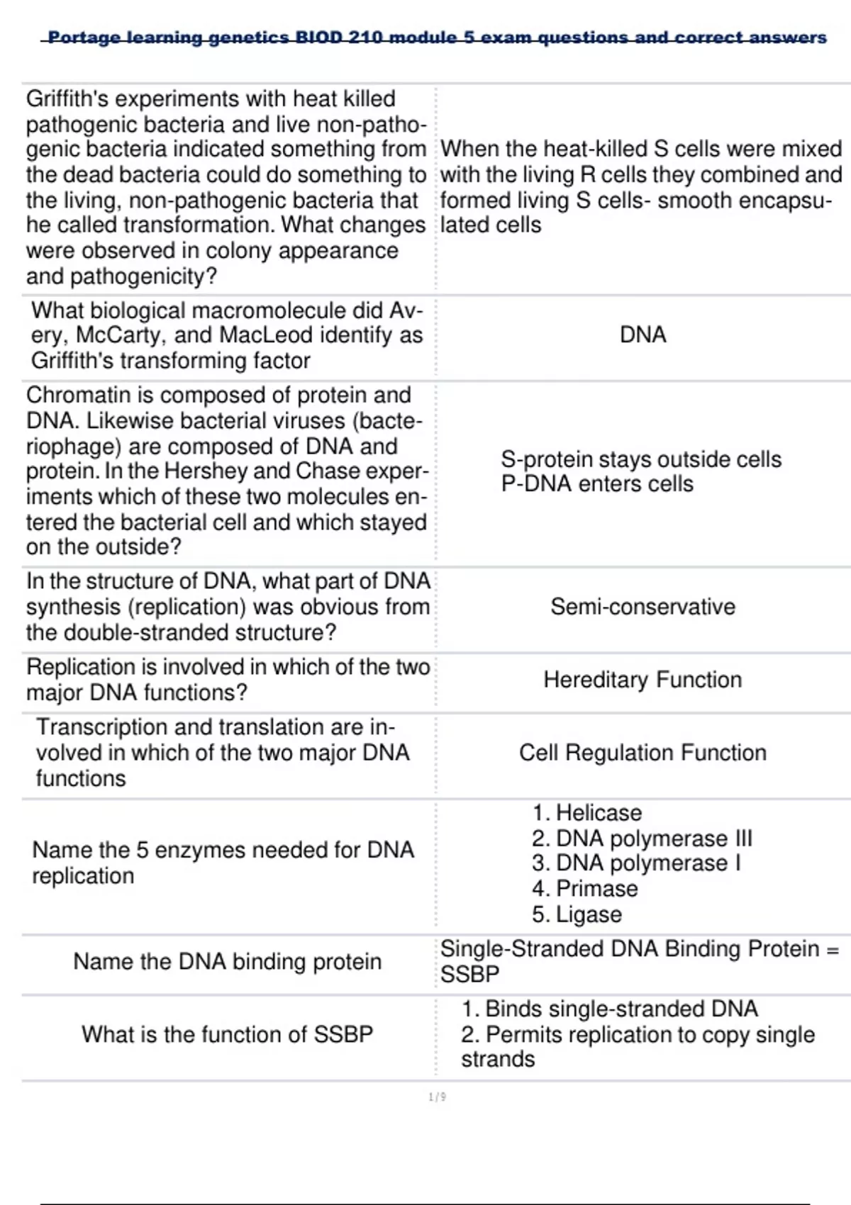 Portage learning genetics BIOD 210 module 5 exam questions and correct answers