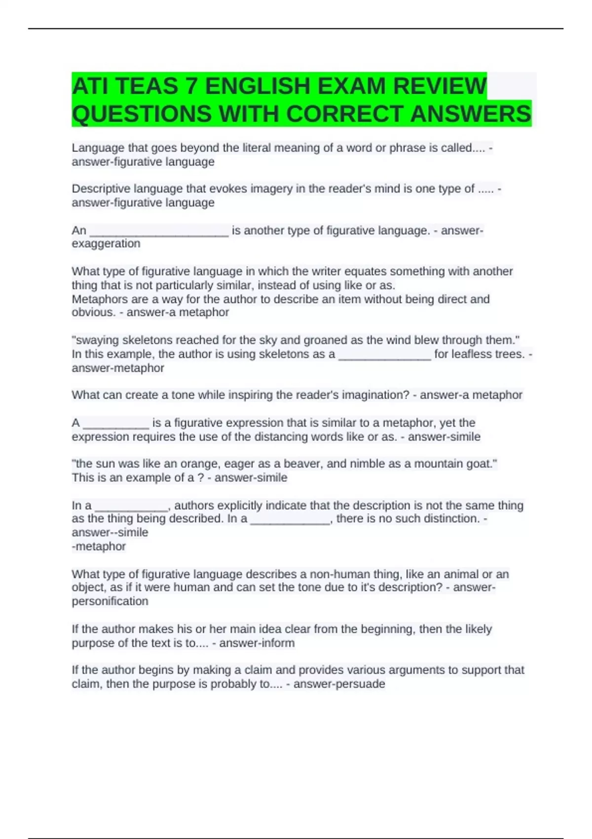 Descriptive language that evokes imagery in the reader's mind is one type of ..... -