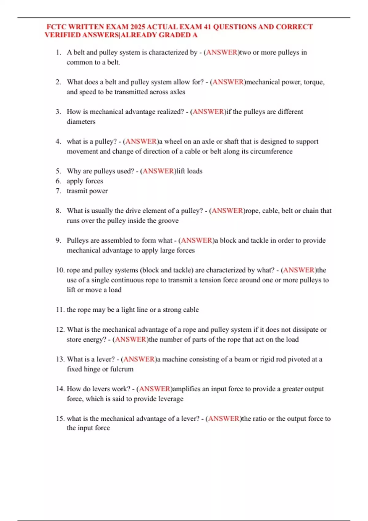 FCTC WRITTEN EXAM 2025 ACTUAL EXAM 41 QUESTIONS AND CORRECT