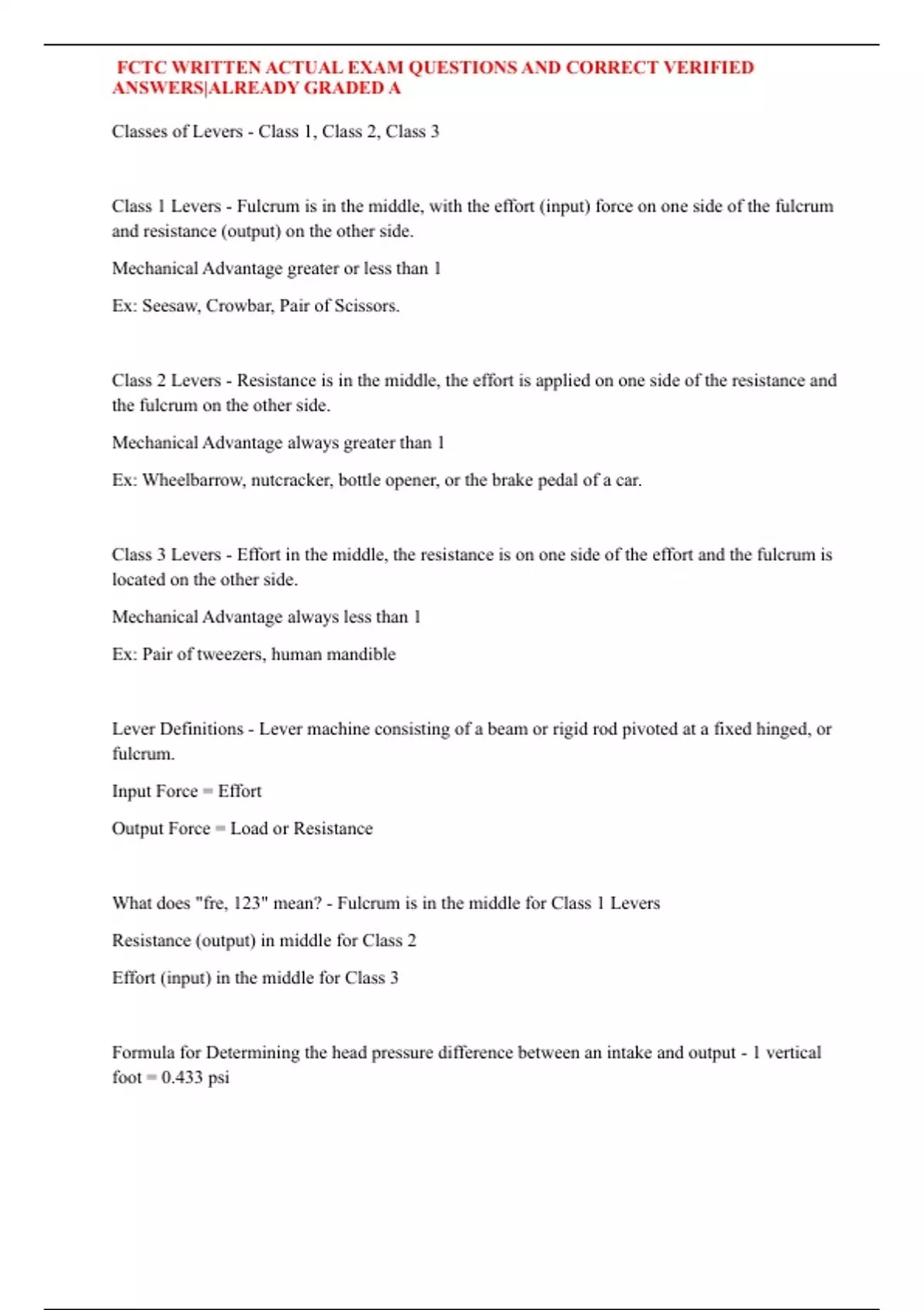 FCTC WRITTEN ACTUAL EXAM QUESTIONS AND CORRECT VERIFIED