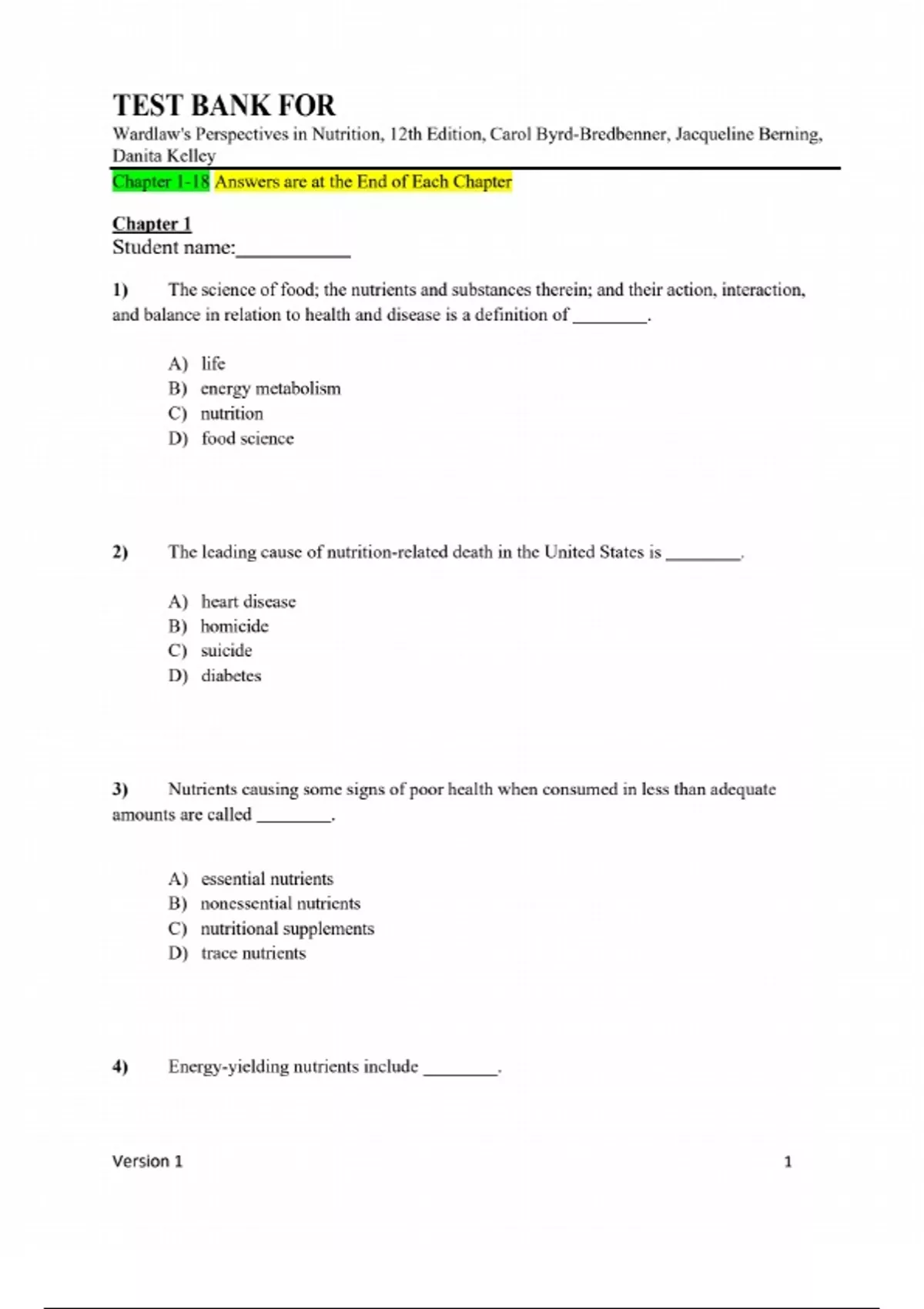 This document presents a full overview of a nutrition course, divided into five parts and spanning eighteen chapters. Part 1 covers Nutrition Fundamentals, including the science of nutrition, tools for a healthy diet, the food supply, and human digestion and absorption. Part 2 focuses on Energy-Yielding Nutrients and Alcohol, detailing carbohydrates, lipids, protein, and alcohol. Part 3 explores Metabolism and Energy Balance, including energy metabolism, weight control, eating disorders, and the connection between nutrition, exercise, and sports. Part 4 dives into Vitamins and Minerals, examining both fat-soluble and water-soluble vitamins, as well as water, major minerals, and trace minerals. Part 5 discusses Nutrition Applications in the Life Cycle, including nutritional needs during pregnancy and breastfeeding, the growing years, and adulthood. Full Chapters Include;....Part 1: Nutrition Fundamentals includes Chapter 1 – The Science of Nutrition, Chapter 2 – Tools of a Healthy Diet, Chapter 3 – The Food Supply, and Chapter 4 – Human Digestion and Absorption. Part 2: Energy-Yielding Nutrients and Alcohol features Chapter 5 – Carbohydrates, Chapter 6 – Lipids, Chapter 7 – Protein, and Chapter 8 – Alcohol. Part 3: Metabolism and Energy Balance covers Chapter 9 – Energy Metabolism, Chapter 10 – Energy Balance, Weight Control, and Eating Disorders, and Chapter 11 – Nutrition, Exercise, and Sports. Part 4: Vitamins and Minerals includes Chapter 12 – The Fat-Soluble Vitamins, Chapter 13 – The Water-Soluble Vitamins, Chapter 14 – Water and Major Minerals, and Chapter 15 – Trace Minerals. Finally, Part 5: Nutrition Applications in the Life Cycle consists of Chapter 16 – Nutritional Aspects of Pregnancy and Breastfeeding, Chapter 17 – Nutrition during the Growing Years, and Chapter 18 – Nutrition during the Adult Years.