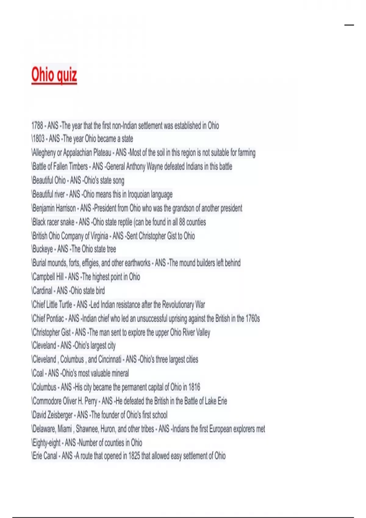 1788 - ANS -The year that the first non-Indian settlement was established in Ohio
