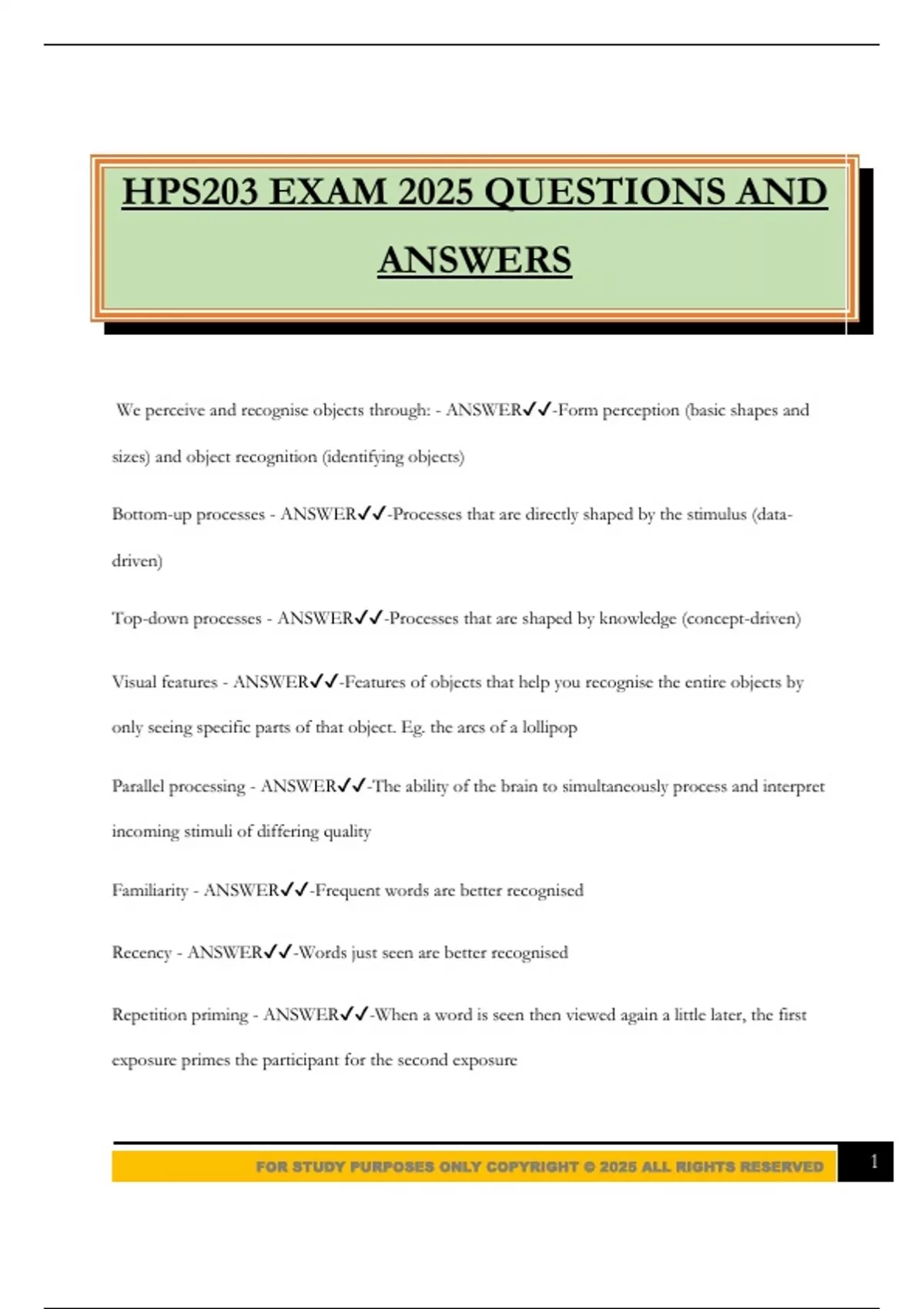 FOR STUDY PURPOSES ONLY COPYRIGHT © 2025 ALL RIGHTS RESERVED 1