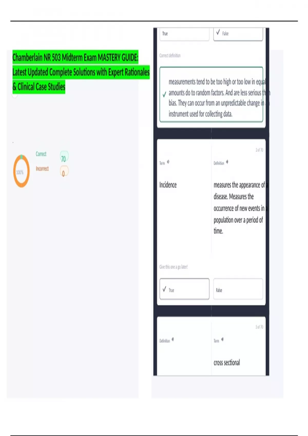 Chamberlain NR 503 Midterm Exam MASTERY GUIDE: Correct definition