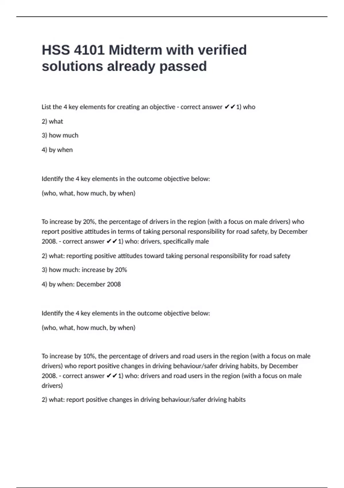 List the 4 key elements for creating an objective - correct answer ✔✔1) who
