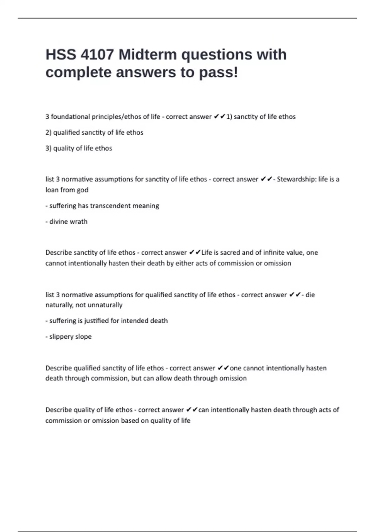 list 3 normative assumptions for sanctity of life ethos - correct answer ✔✔- Stewardship: life is a