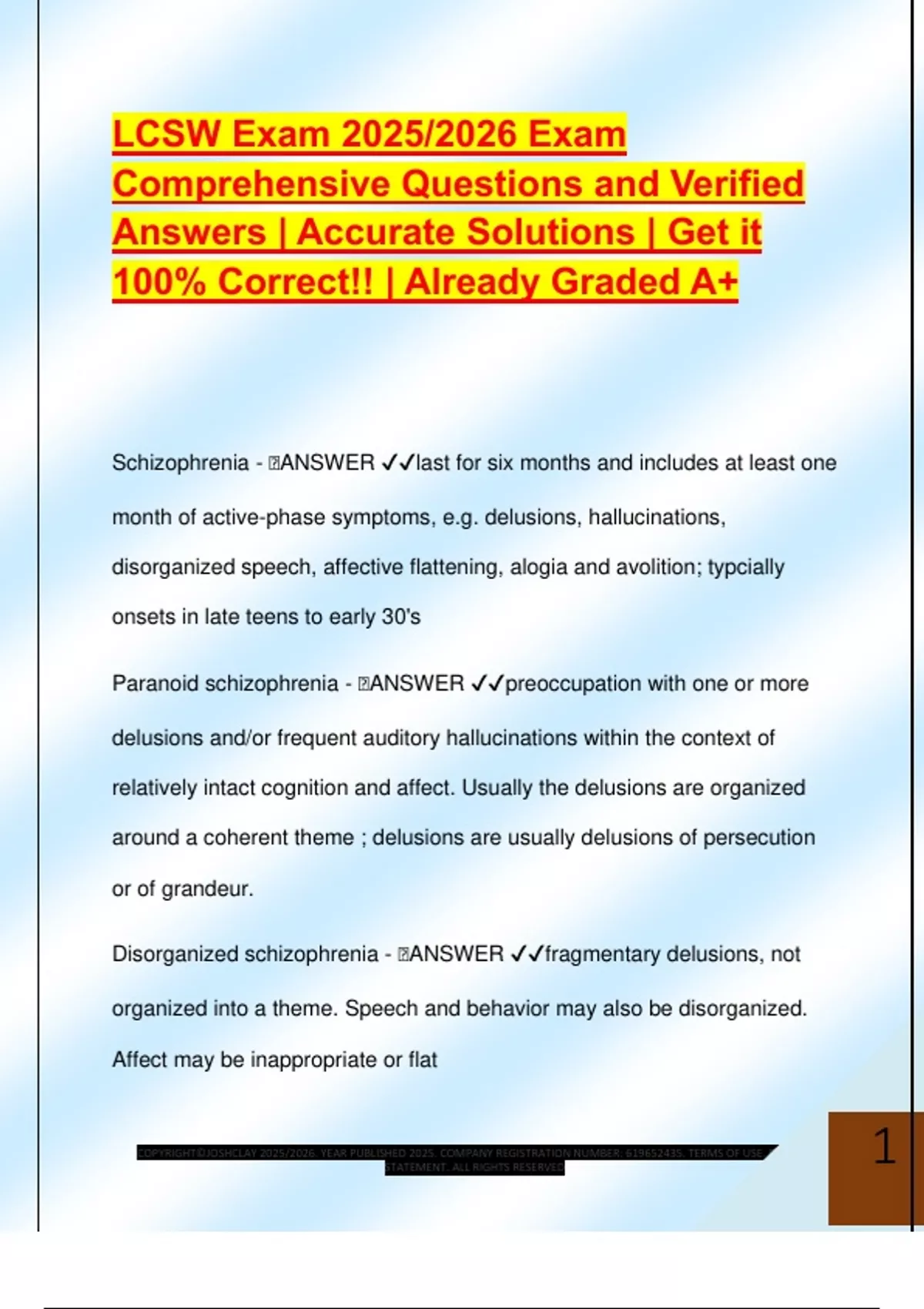 Schizophrenia - 🧠ANSWER ✔✔last for six months and includes at least one