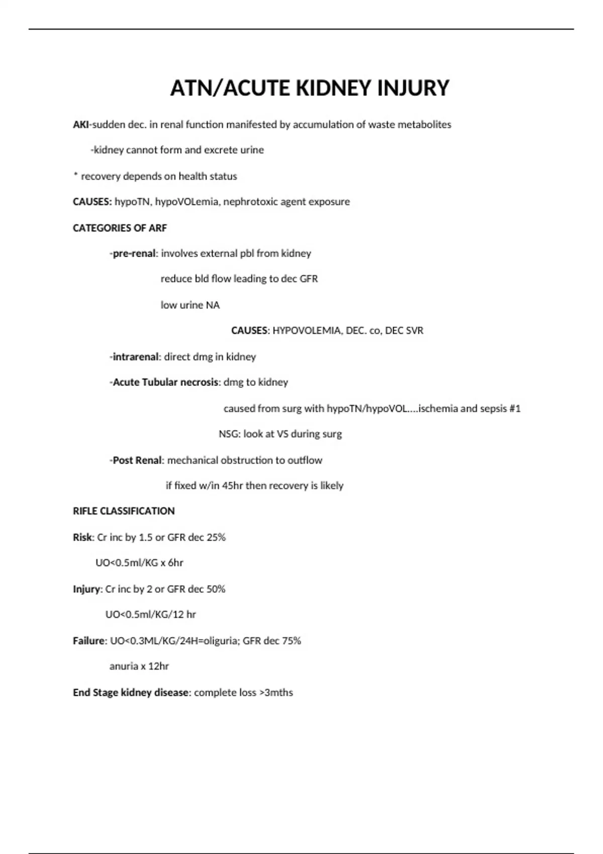 CAUSES: hypoTN, hypoVOLemia, nephrotoxic agent exposure