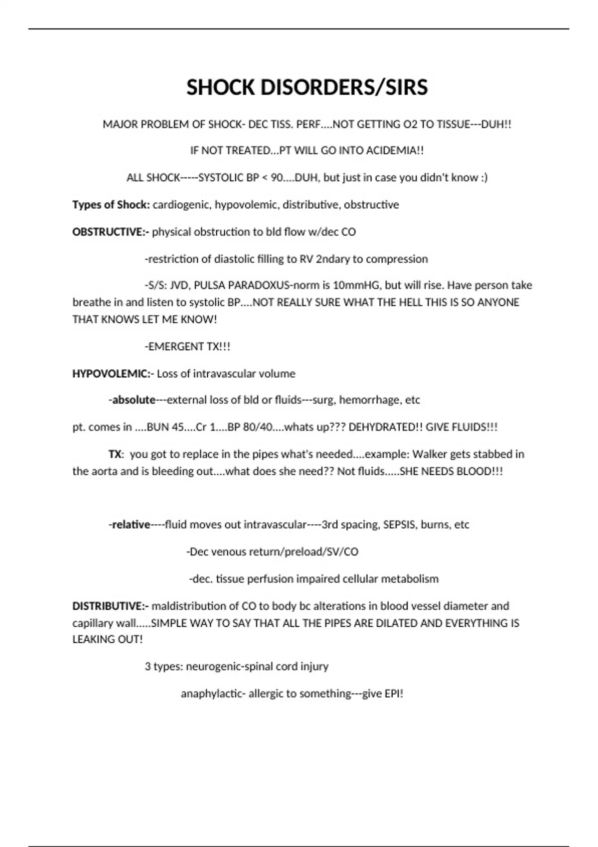 MAJOR PROBLEM OF SHOCK- DEC TISS. PERF....NOT GETTING O2 TO TISSUE---DUH!!