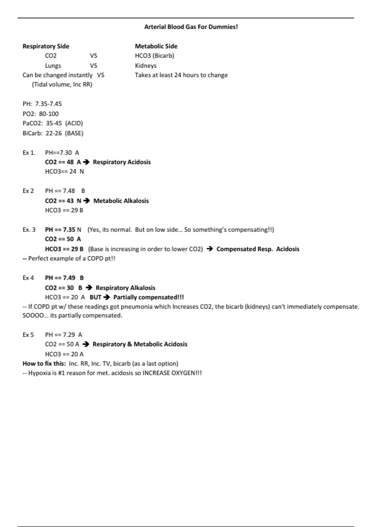 -- If COPD pt w/ these readings got pneumonia which Increases CO2, the bicarb (kidneys) can’t immediately compensate.