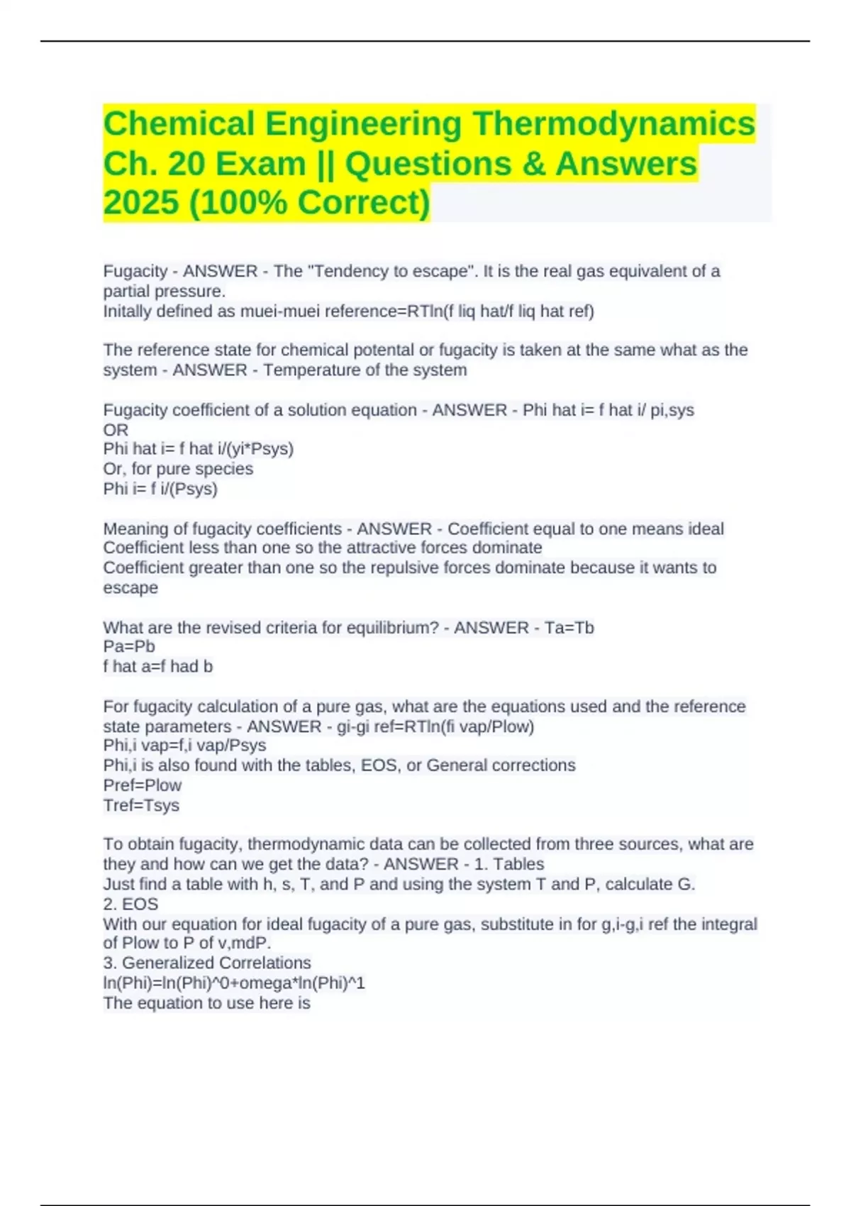 Fugacity coefficient of a solution equation - ANSWER - Phi hat i= f hat i/ pi,sys