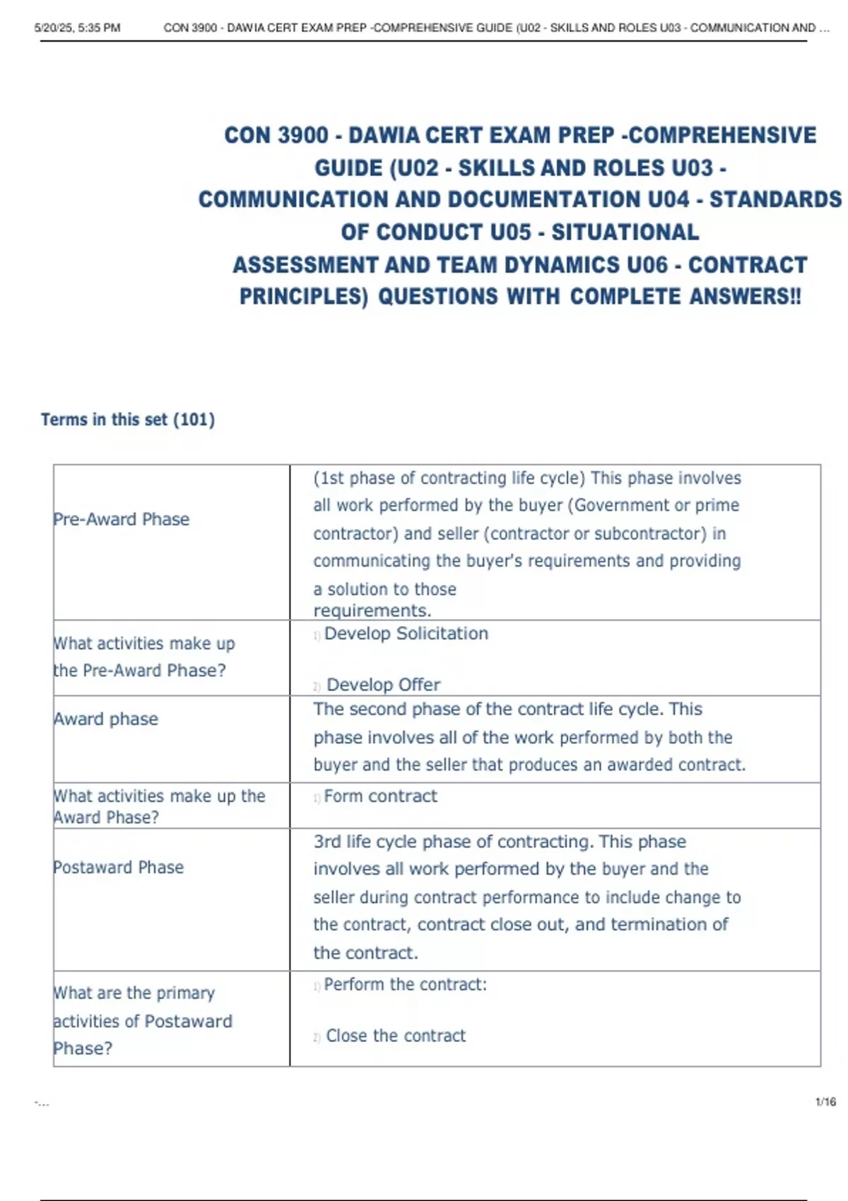 ,5/20/25, 5:35 PM CON 3900 - DAWIA CERT EXAM PREP -COMPREHENSIVE GUIDE (U02 - SKILLS AND ROLES U03 - COMMUNICATION AND …