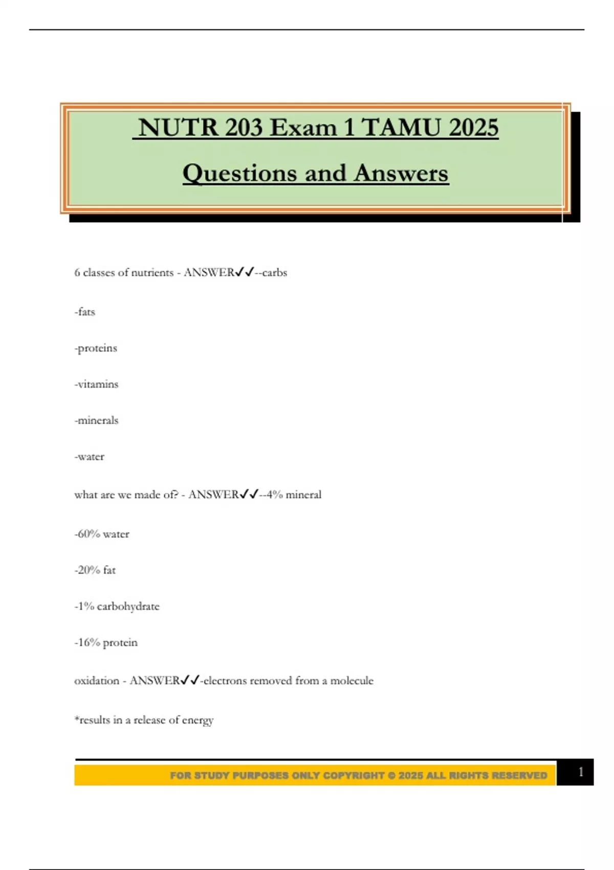 FOR STUDY PURPOSES ONLY COPYRIGHT © 2025 ALL RIGHTS RESERVED 1