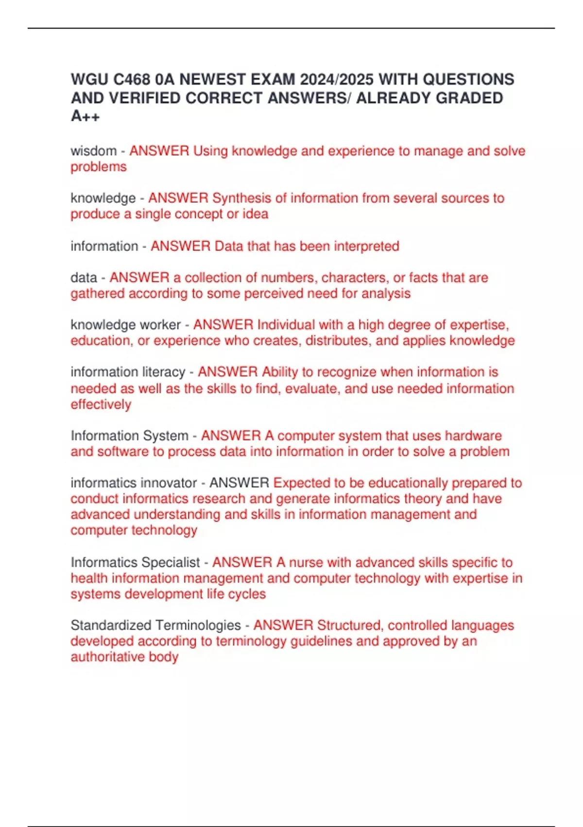 WGU C468 0A NEWEST EXAM 2024/2025 WITH QUESTIONS AND VERIFIED CORRECT ANSWERS/ ALREADY GRADED A++ WGU C468 0A NEWEST EXAM 2024/2025 WITH QUESTIONS AND VERIFIED CORRECT ANSWERS/ ALREADY GRADED A++