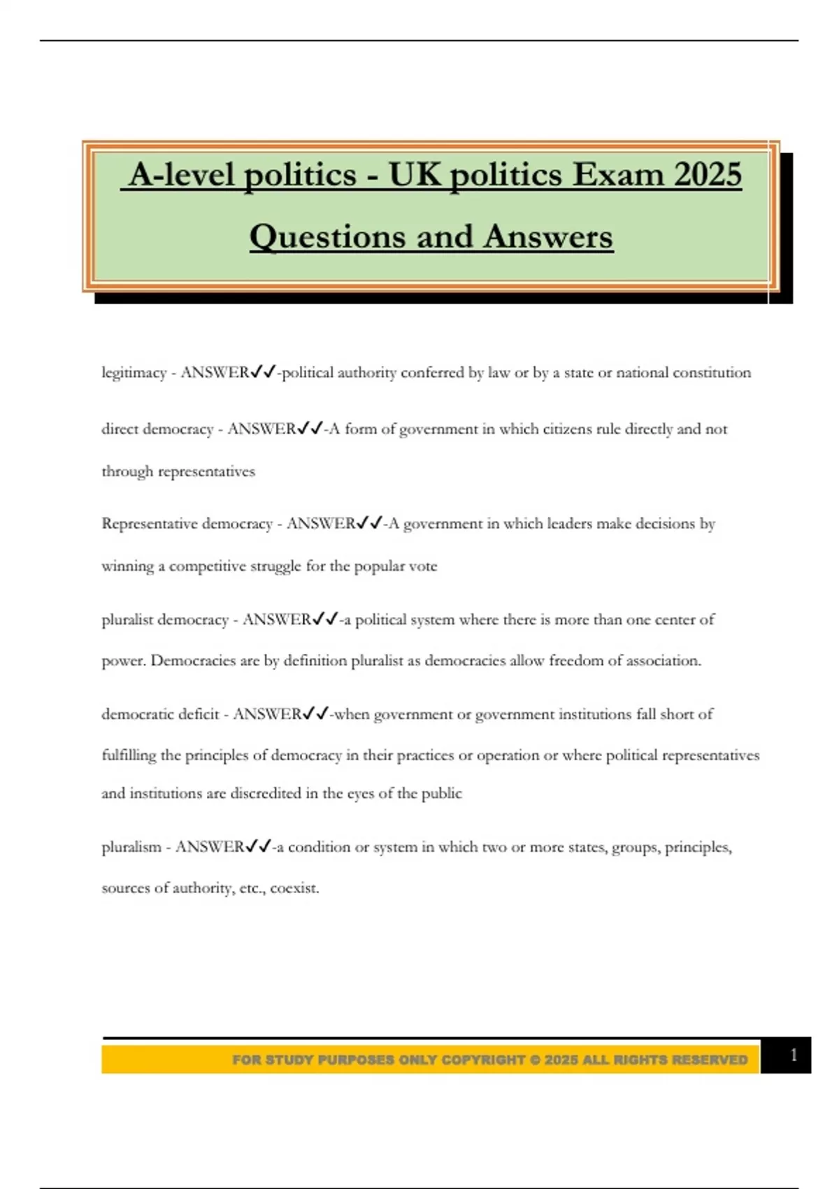 FOR STUDY PURPOSES ONLY COPYRIGHT © 2025 ALL RIGHTS RESERVED 1