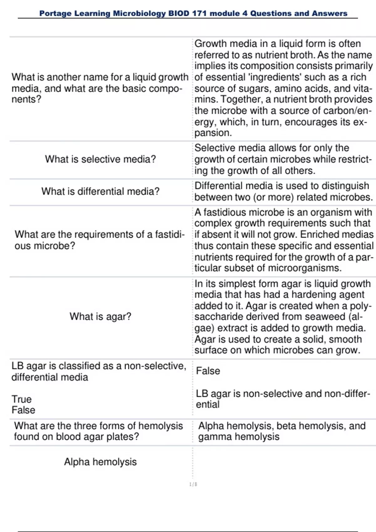 , Portage Learning Microbiology BIOD 171 module 4 Questions and Answers