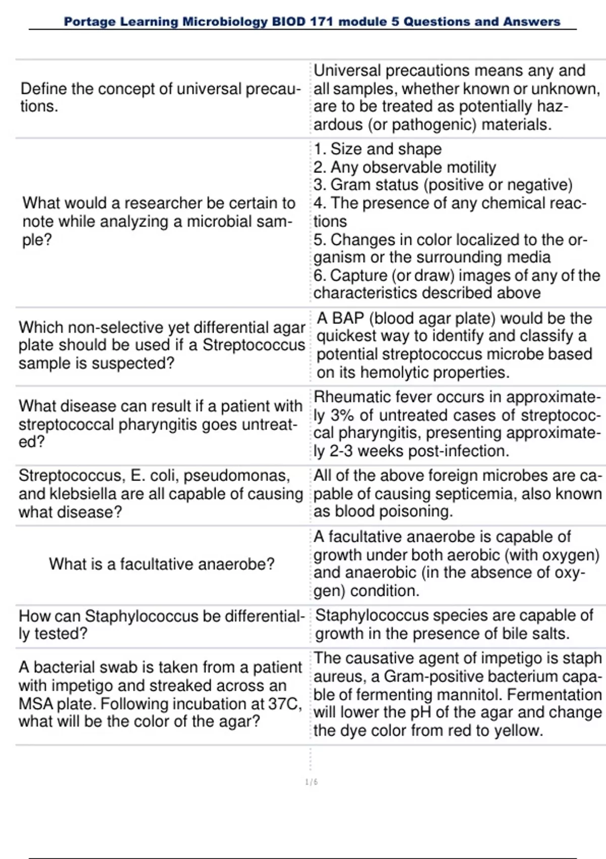 , Portage Learning Microbiology BIOD 171 module 5 Questions and Answers