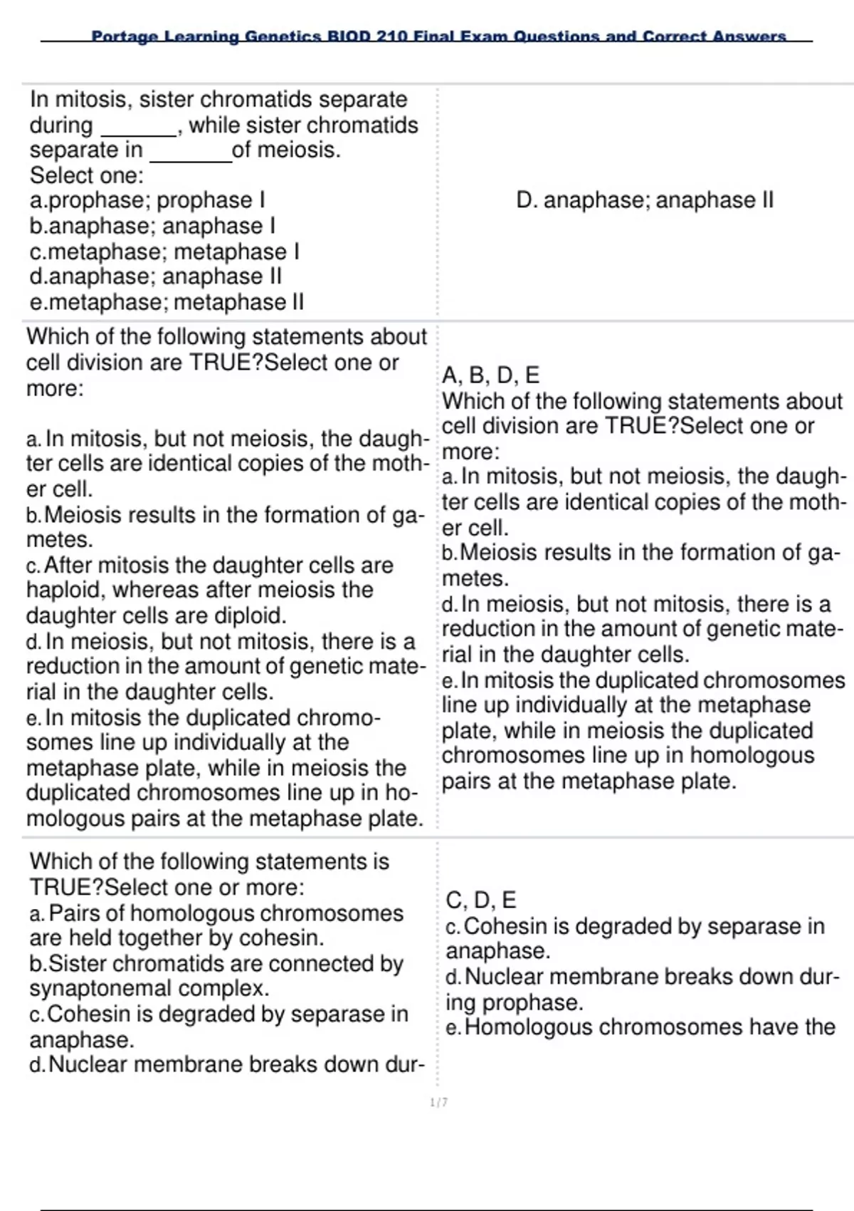 , Portage Learning Genetics BIOD 210 Final Exam Questions and Correct Answers