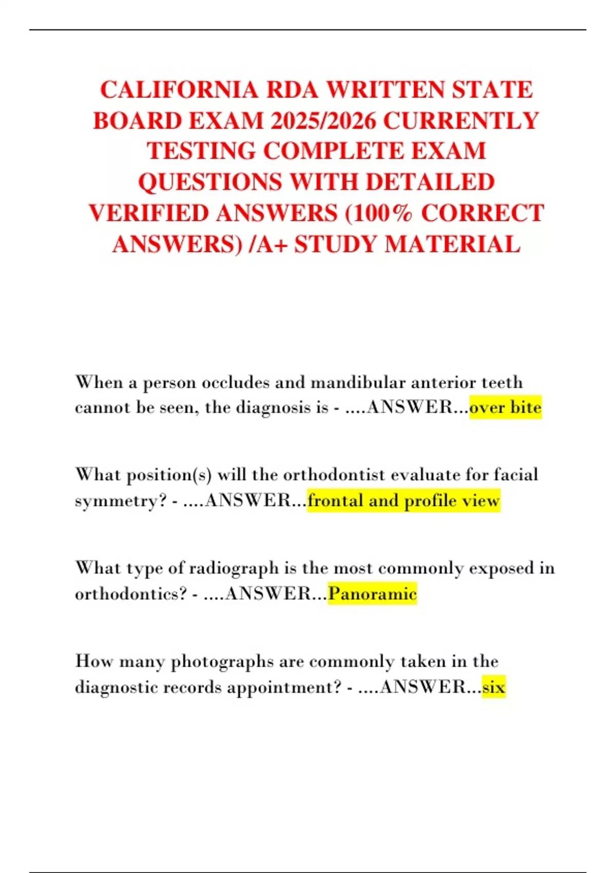 VERIFIED ANSWERS (100% CORRECT
