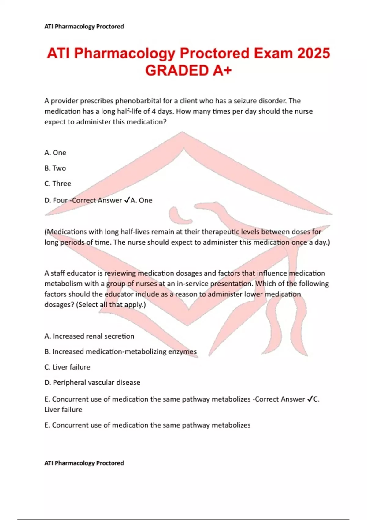 ATI Pharmacology Proctored Exam 2025 GRADED A+