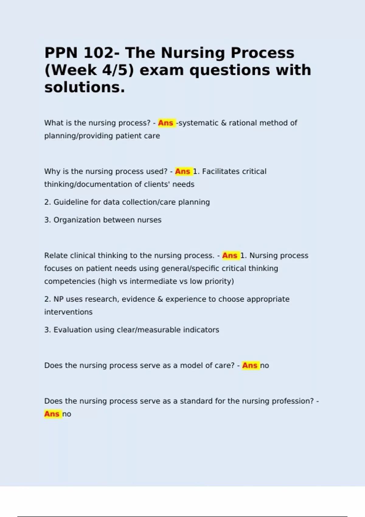 Relate clinical thinking to the nursing process. - Ans 1. Nursing process