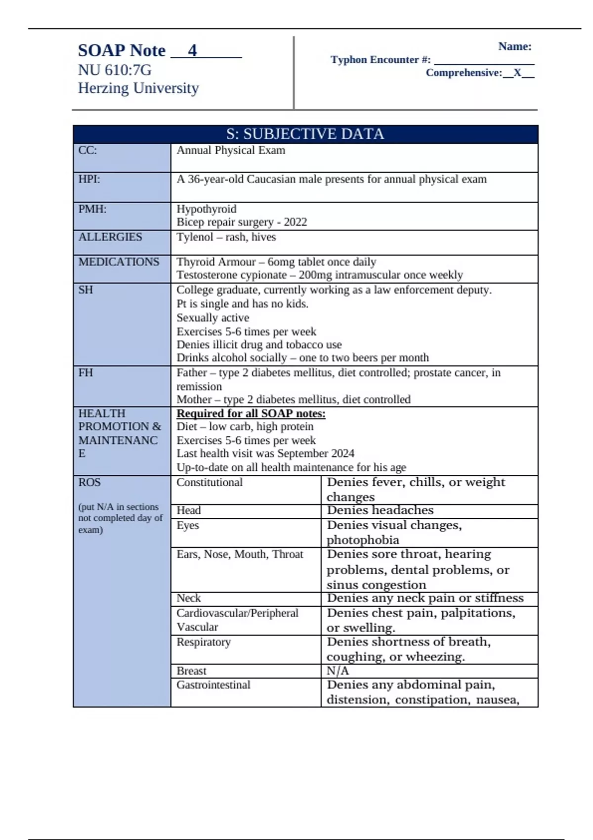 HPI: A 36-year-old Caucasian male presents for annual physical exam