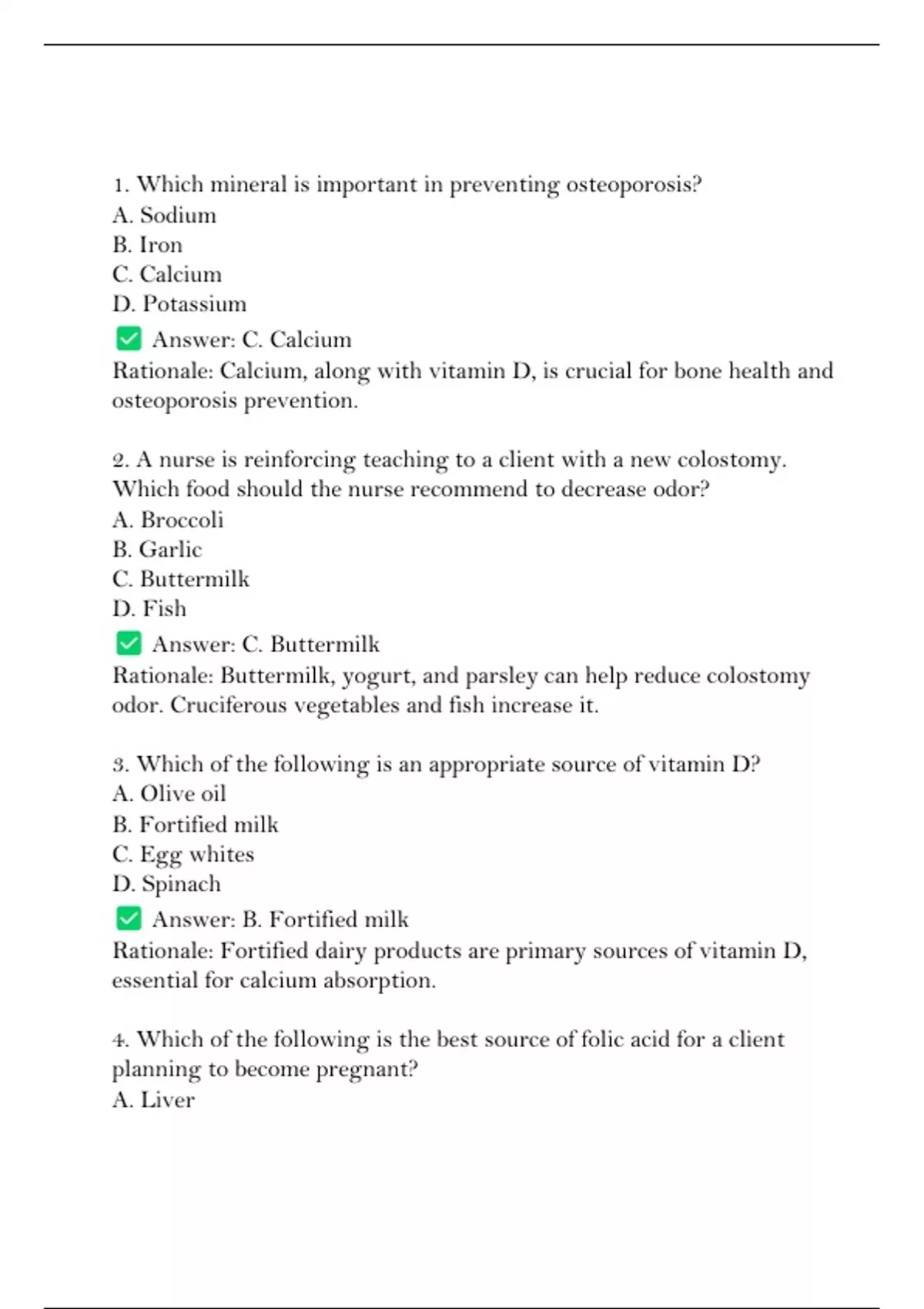 1. Which mineral is important in preventing osteoporosis?