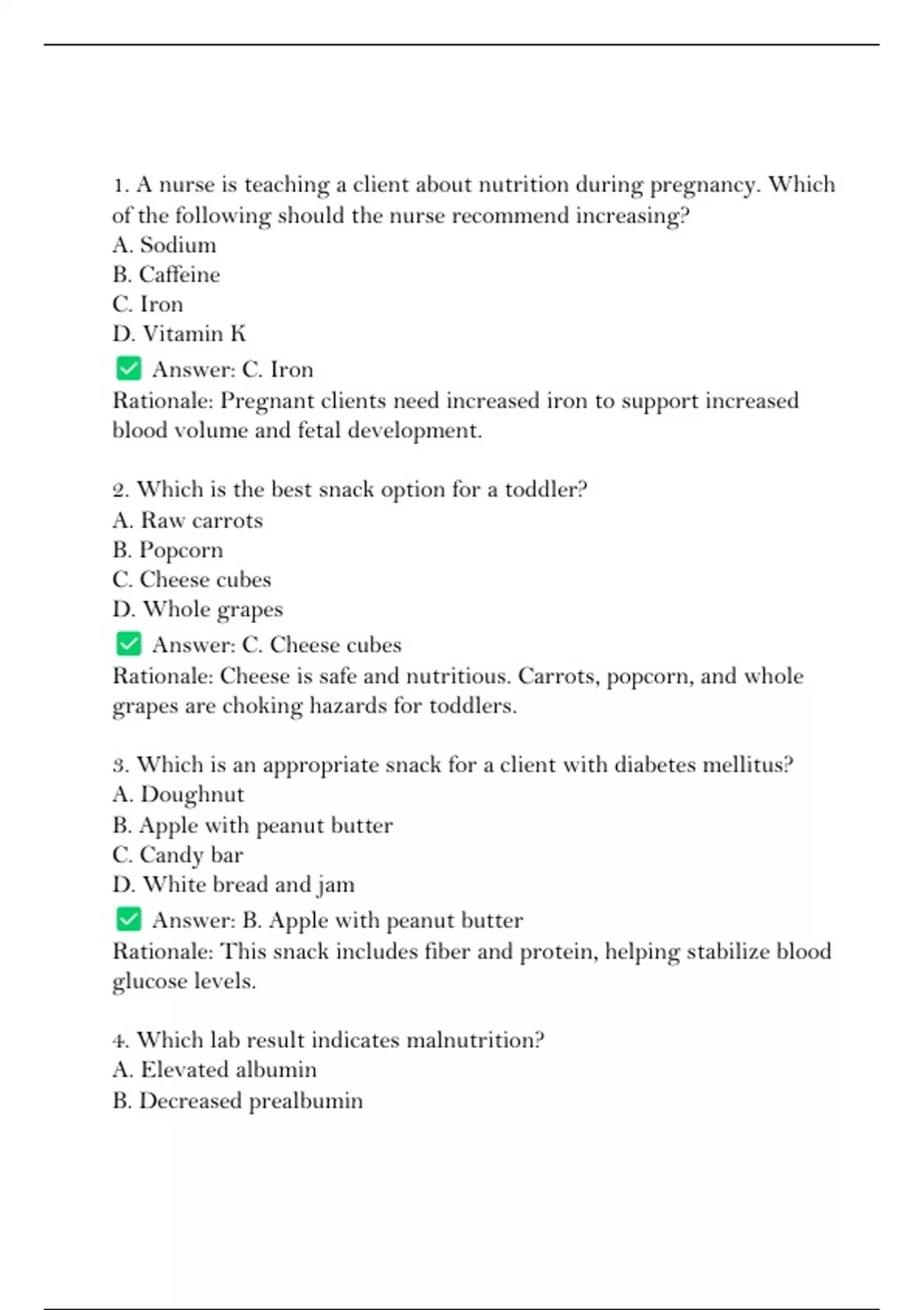 1. A nurse is teaching a client about nutrition during pregnancy. Which