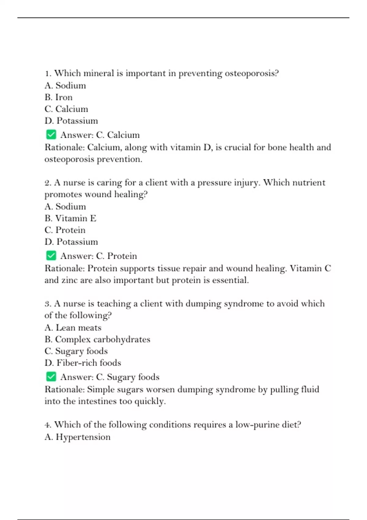 1. Which mineral is important in preventing osteoporosis?