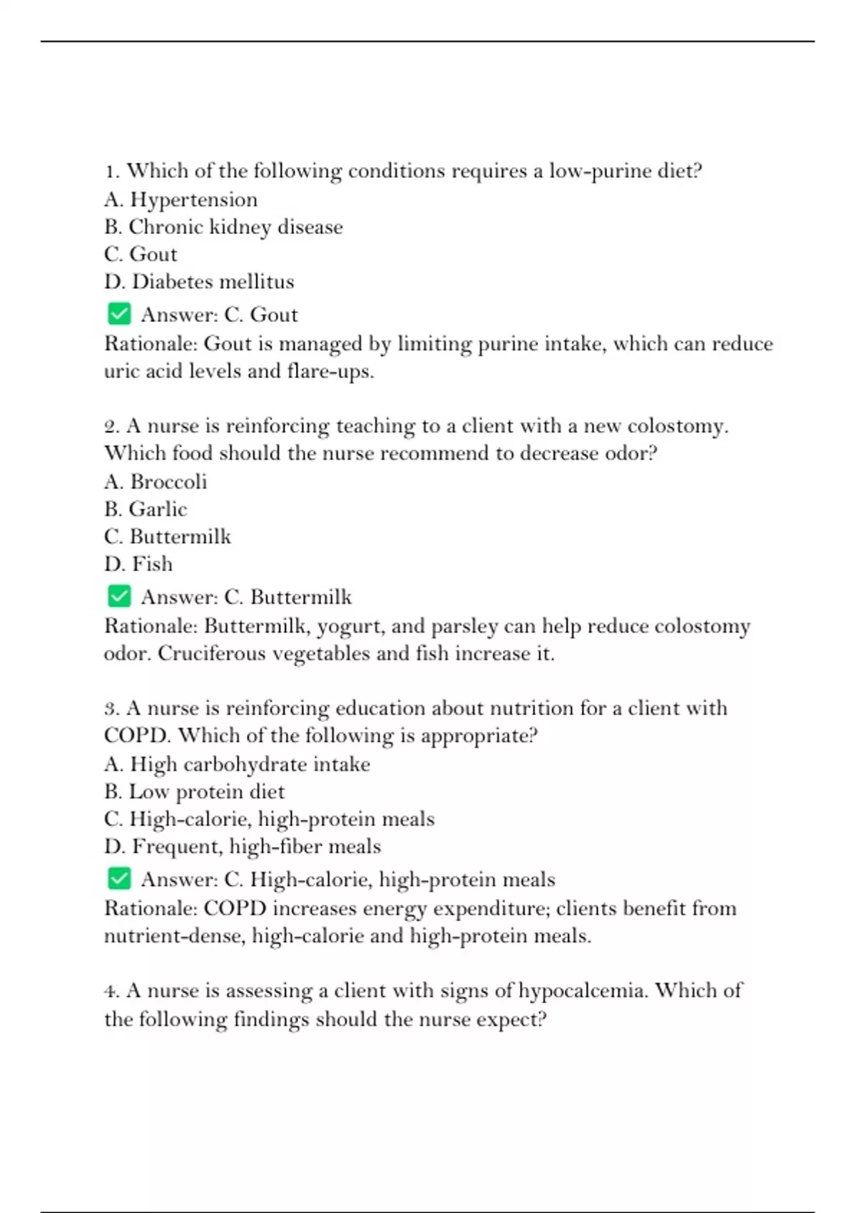 Rationale: Gout is managed by limiting purine intake, which can reduce