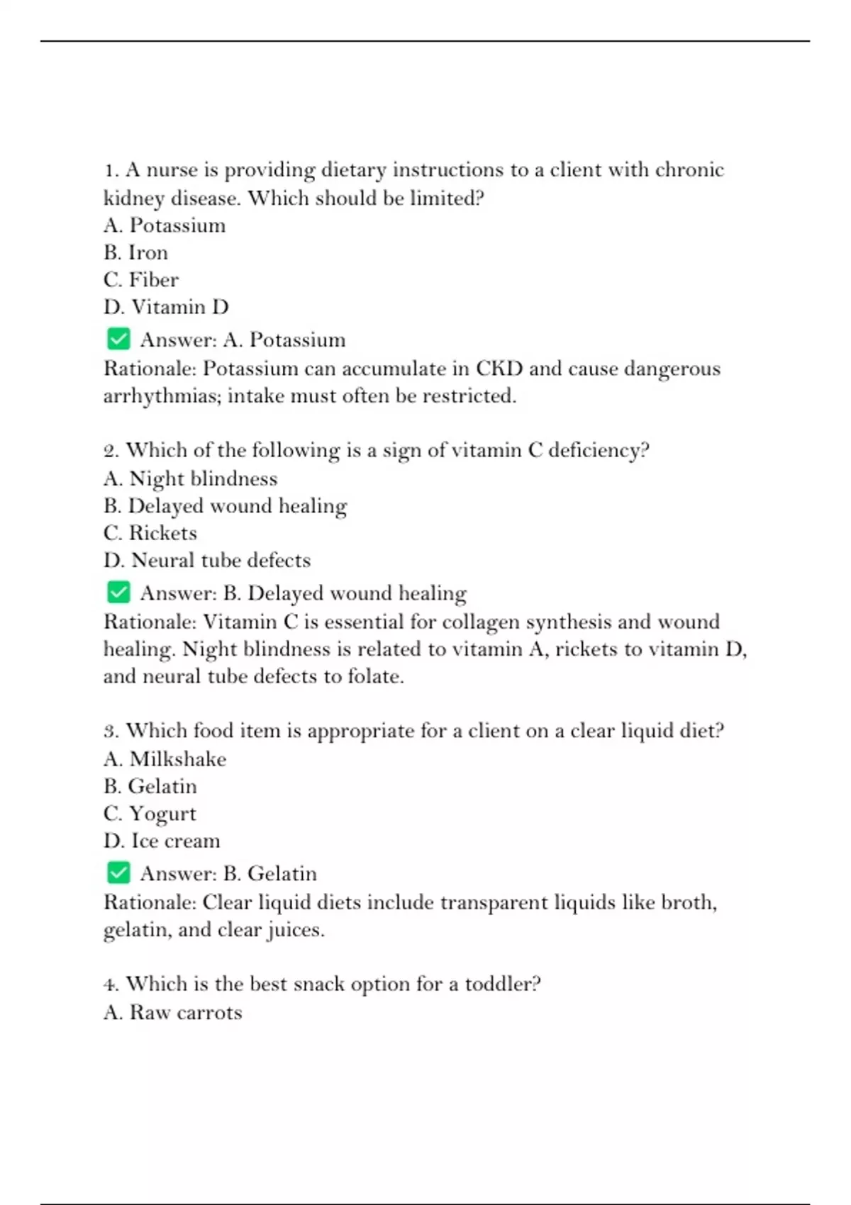 1. A nurse is providing dietary instructions to a client with chronic