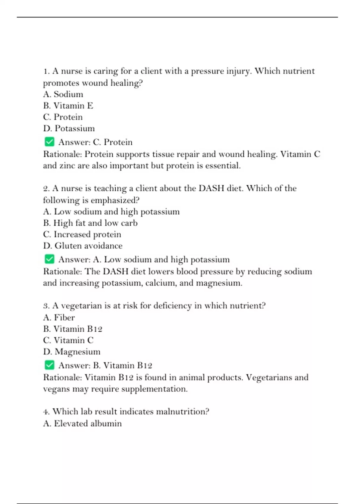 1. A nurse is caring for a client with a pressure injury. Which nutrient