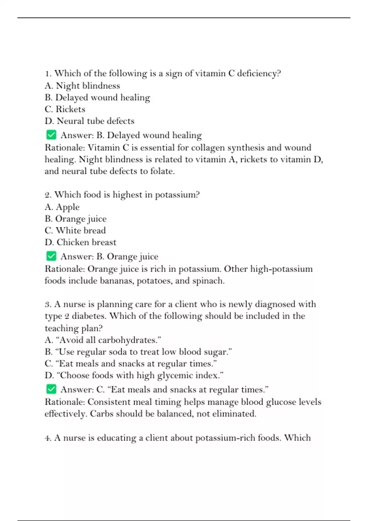 4. A nurse is educating a client about potassium-rich foods. Which