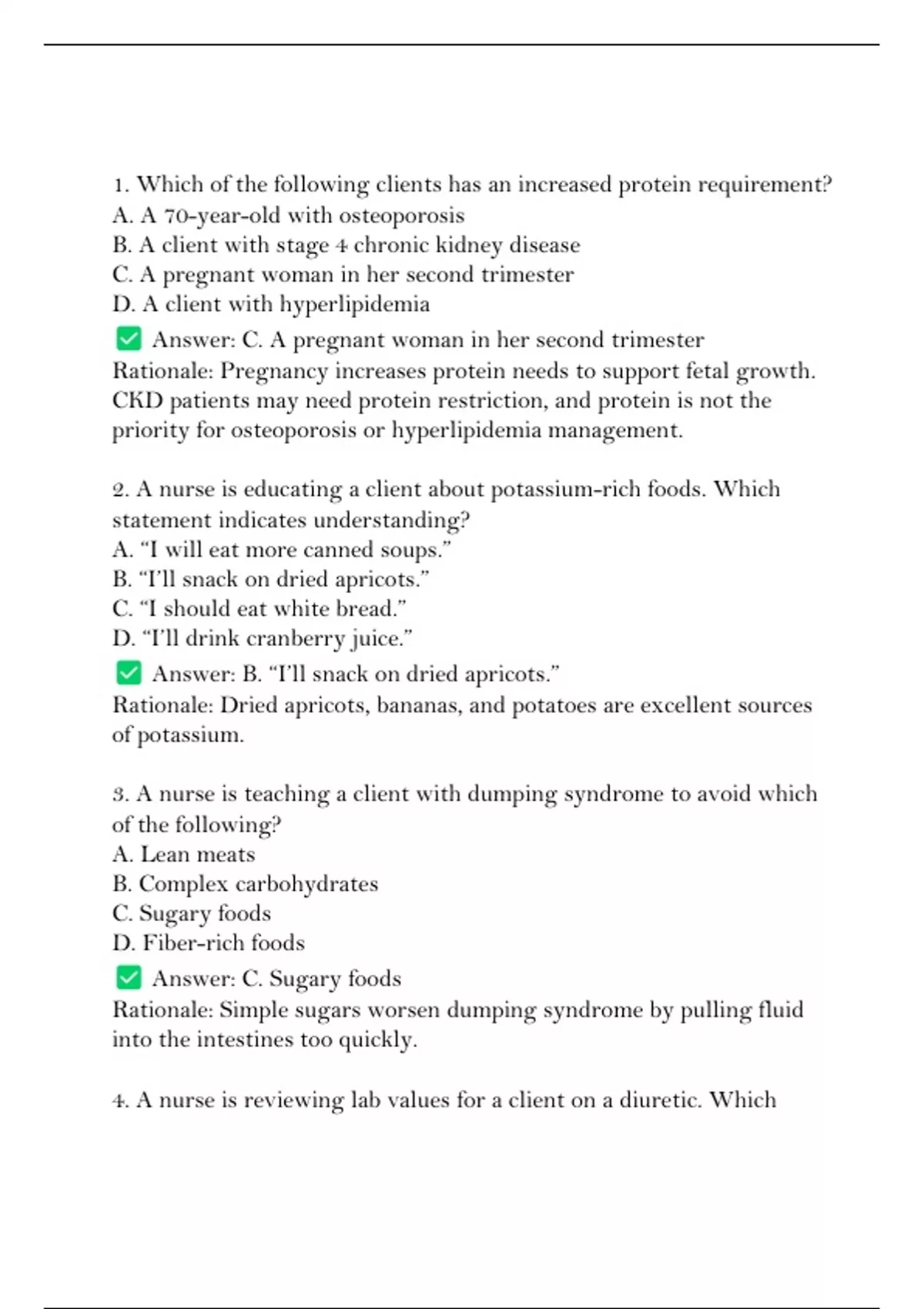 3. A nurse is teaching a client with dumping syndrome to avoid which