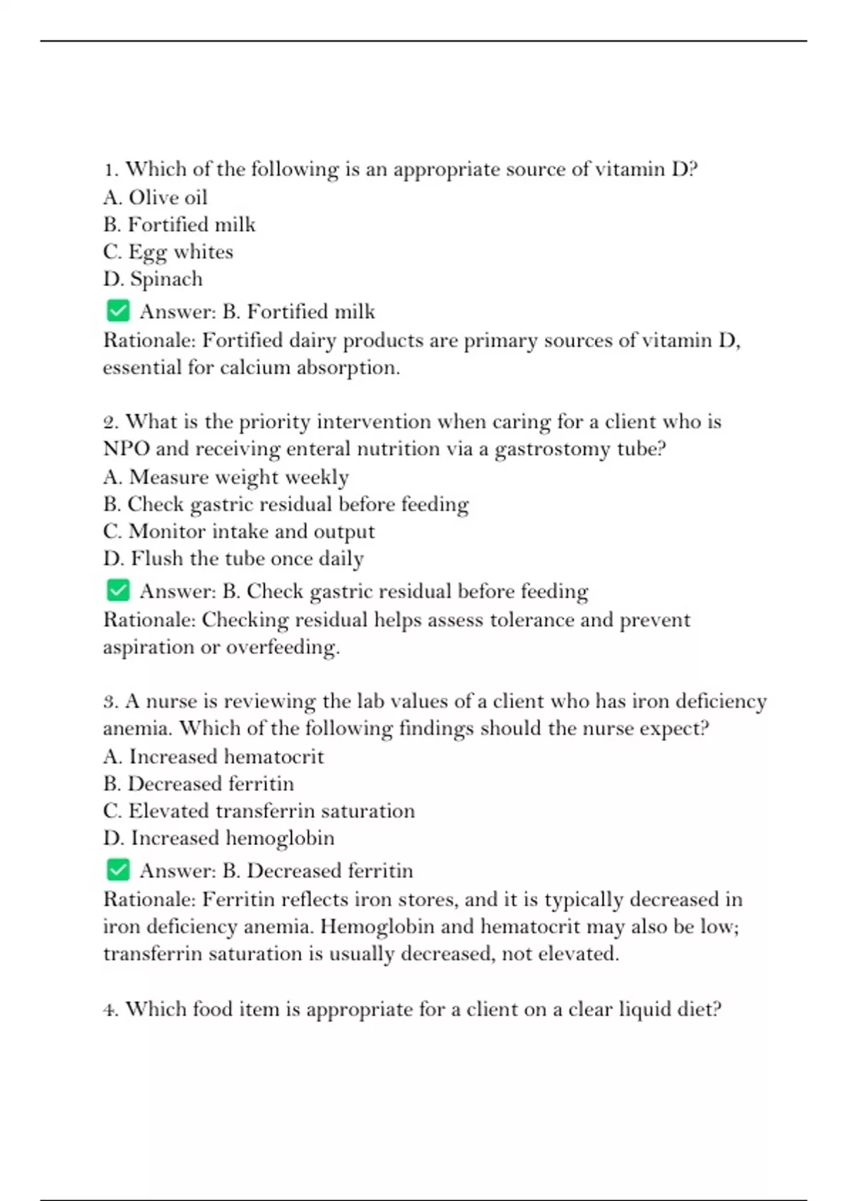 Rationale: Clear liquid diets include transparent liquids like broth,