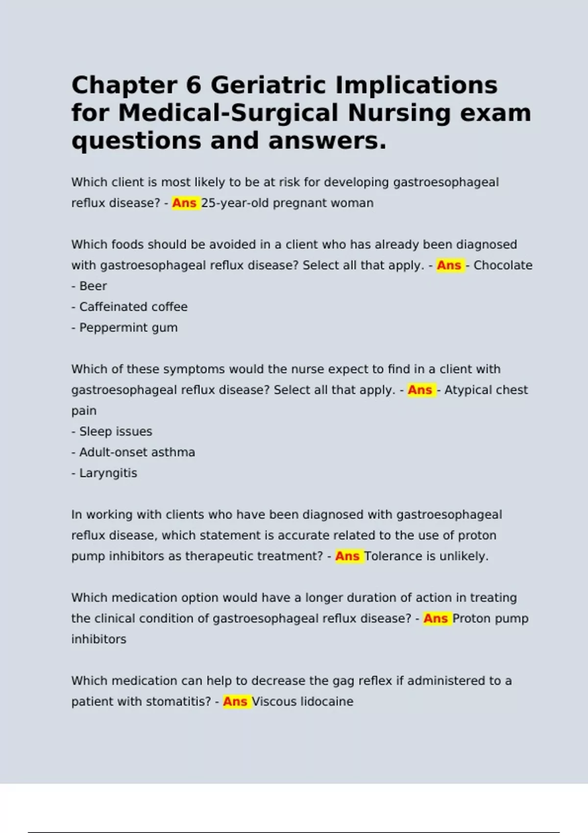with gastroesophageal reflux disease? Select all that apply. - Ans - Chocolate