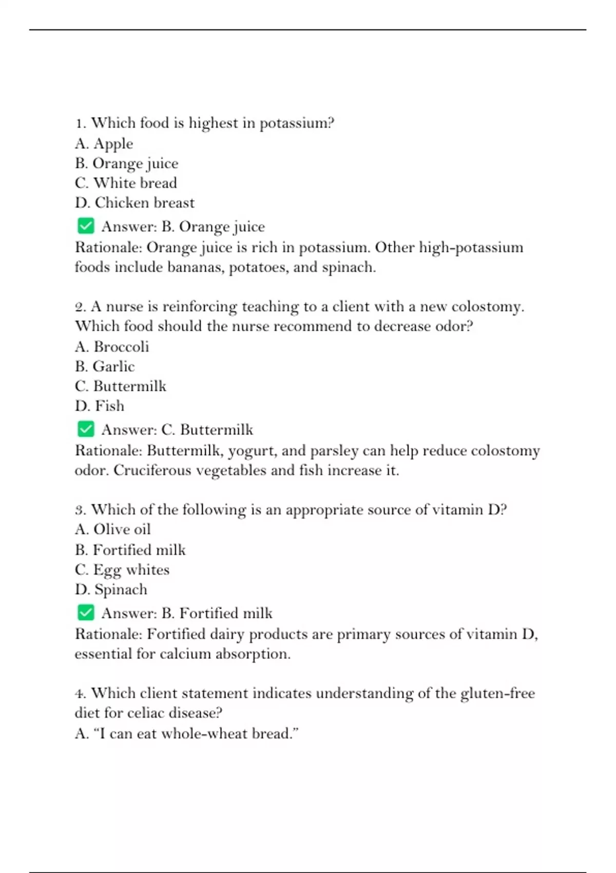 Rationale: Orange juice is rich in potassium. Other high-potassium