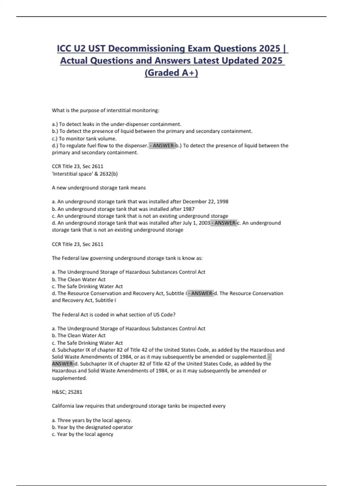 ICC U2 UST Decommissioning Exam Questions 2025 |