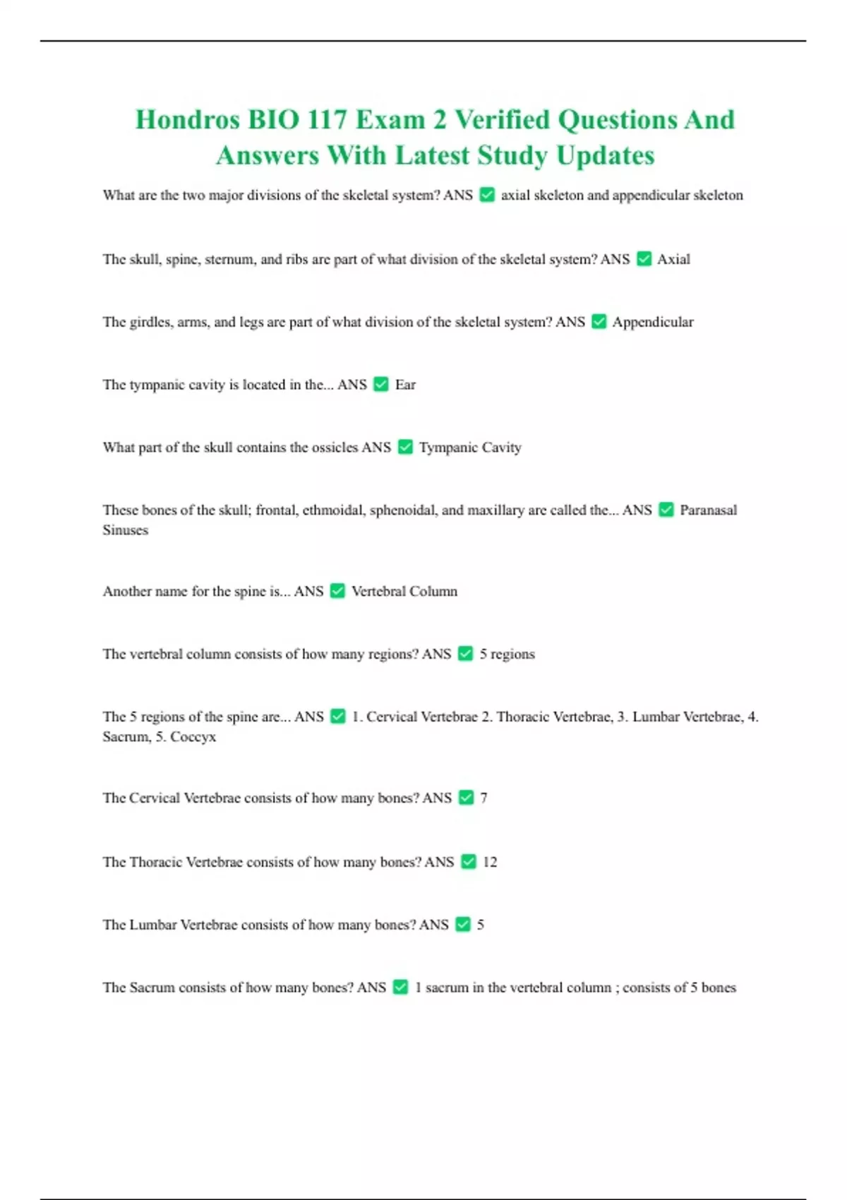 Hondros BIO 117 Exam 2 Verified Questions And Answers With Latest Study Updates