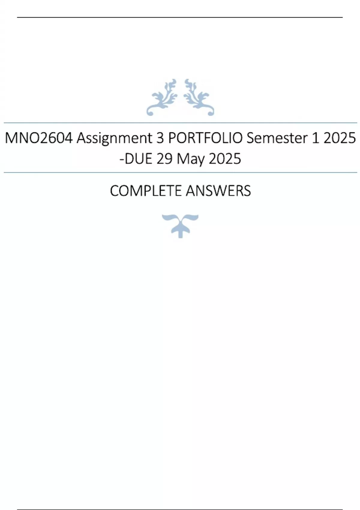 MNO2604 Assignment 3 PORTFOLIO (COMPLETE ANSWERS) Semester 1 2025 - DUE 29 May 2025