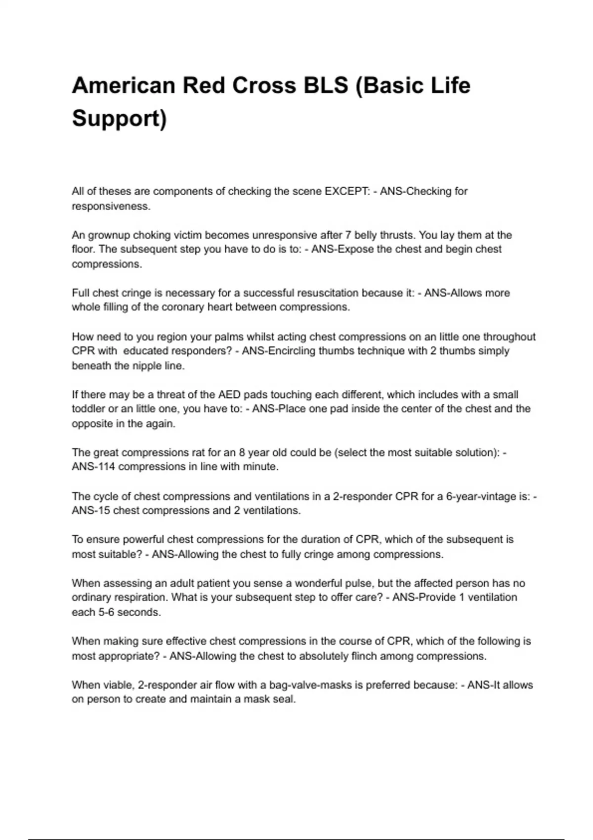 most appropriate? - ANS-Allowing the chest to absolutely flinch among compressions.