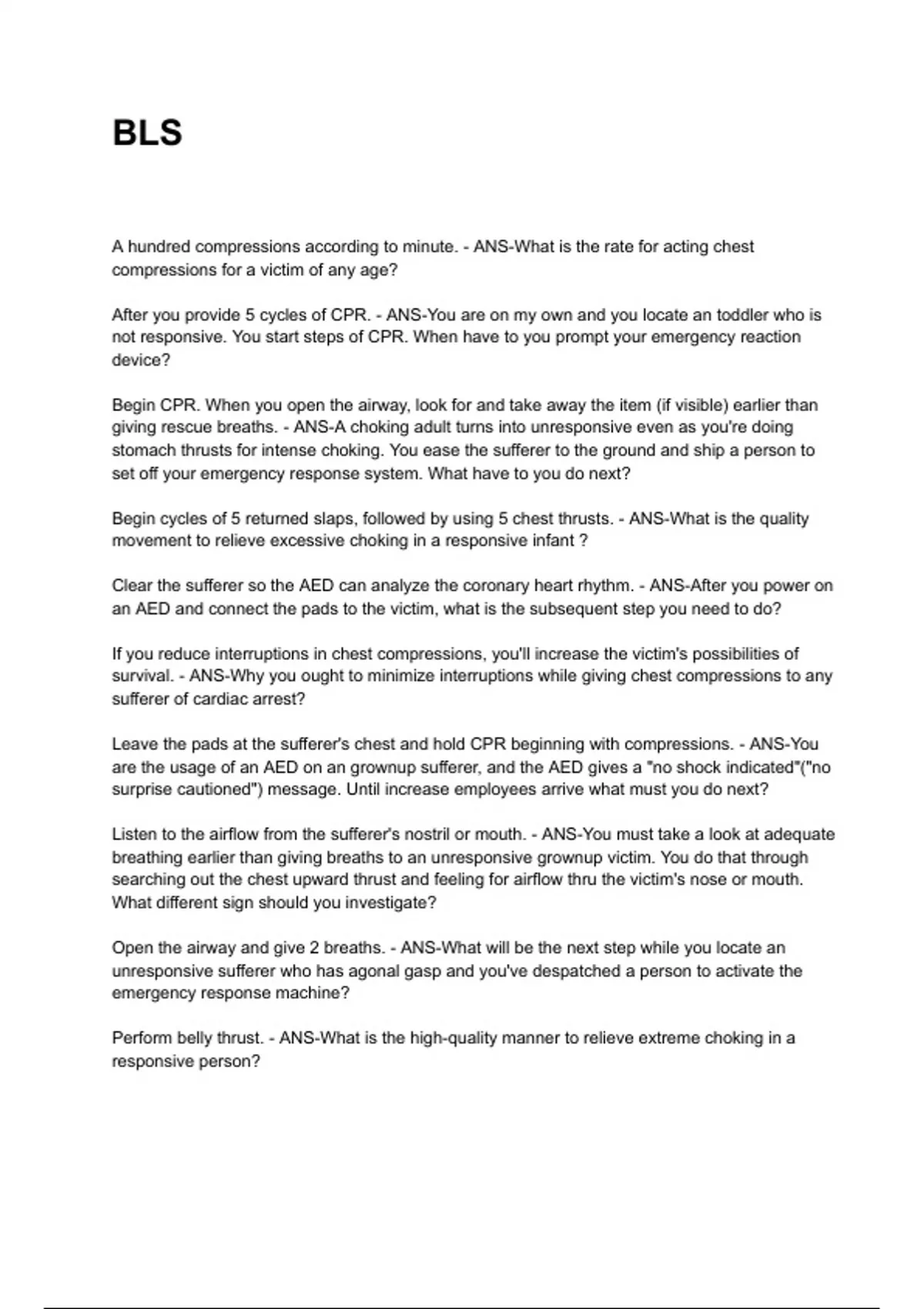 A hundred compressions according to minute. - ANS-What is the rate for acting chest