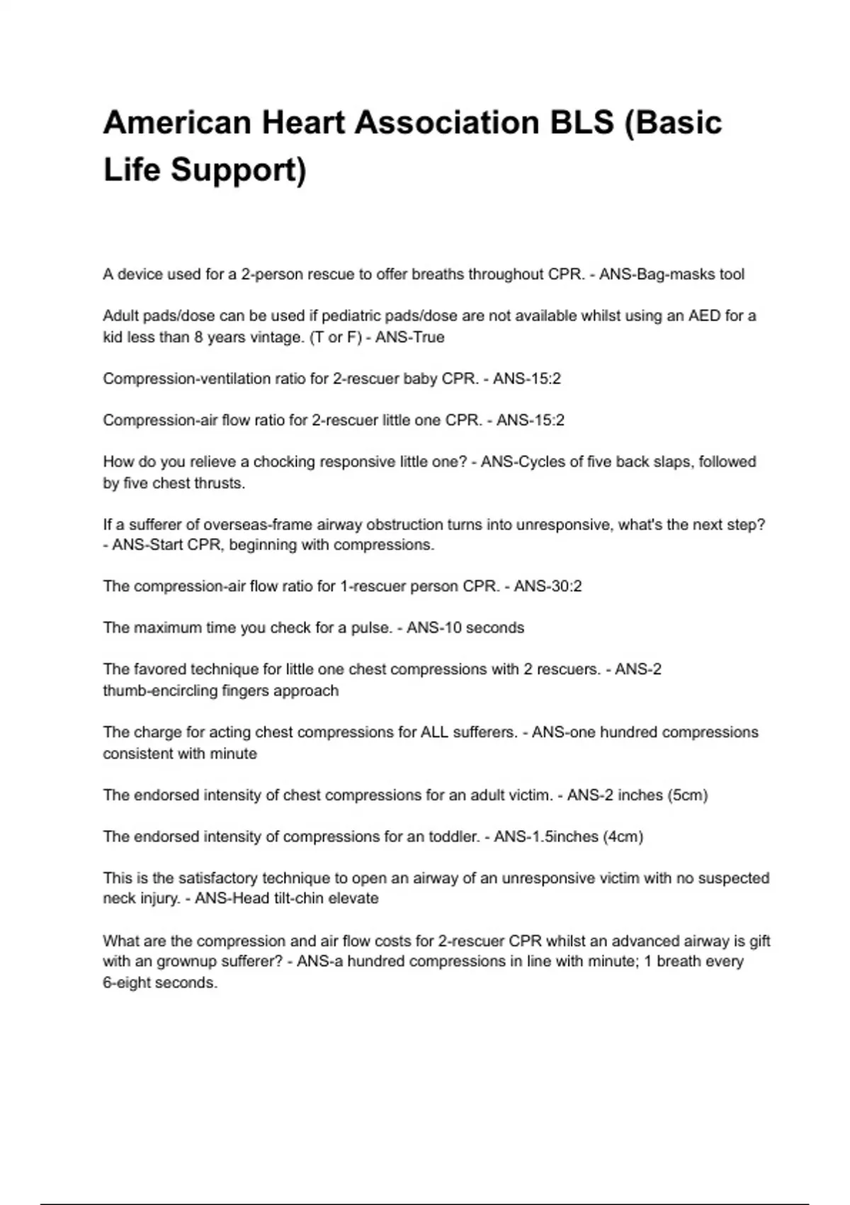 The charge for acting chest compressions for ALL sufferers. - ANS-one hundred compressions