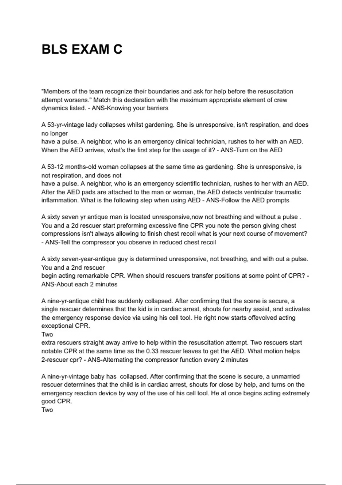 A sixty seven yr antique man is located unresponsive,now not breathing and without a pulse .