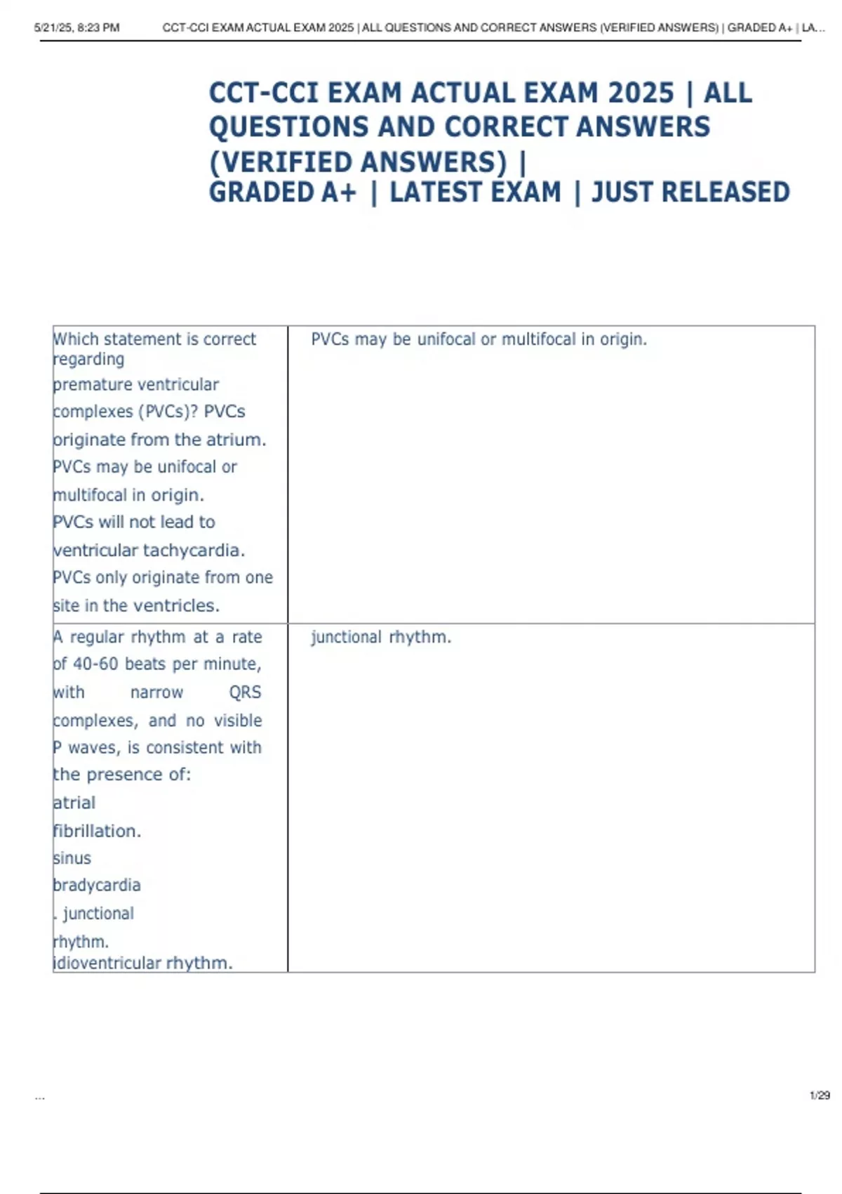 , 5/21/25, 8:23 PM CCT-CCI EXAM ACTUAL EXAM 2025 | ALL QUESTIONS AND CORRECT ANSWERS (VERIFIED ANSWERS) | GRADED A+ | LA…