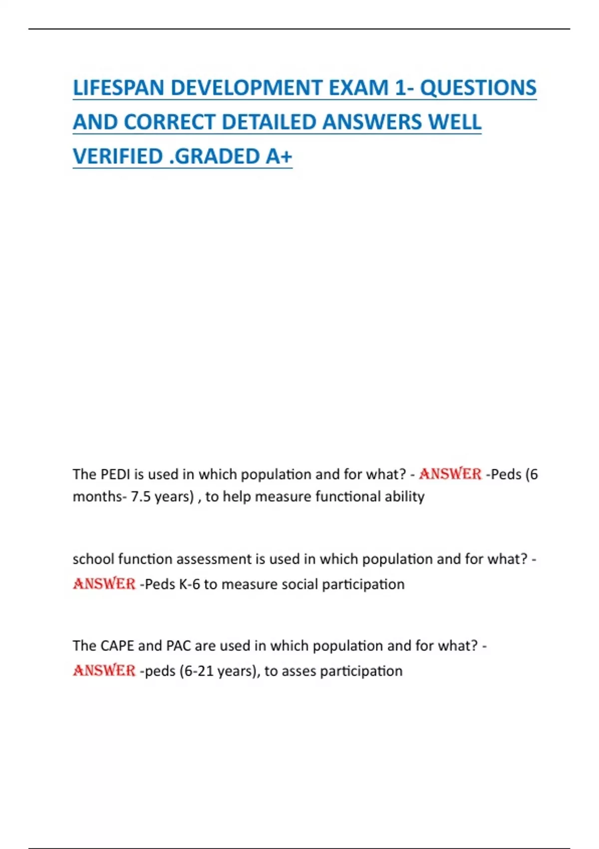 The PEDI is used in which population and for what? - ANSWER -Peds (6