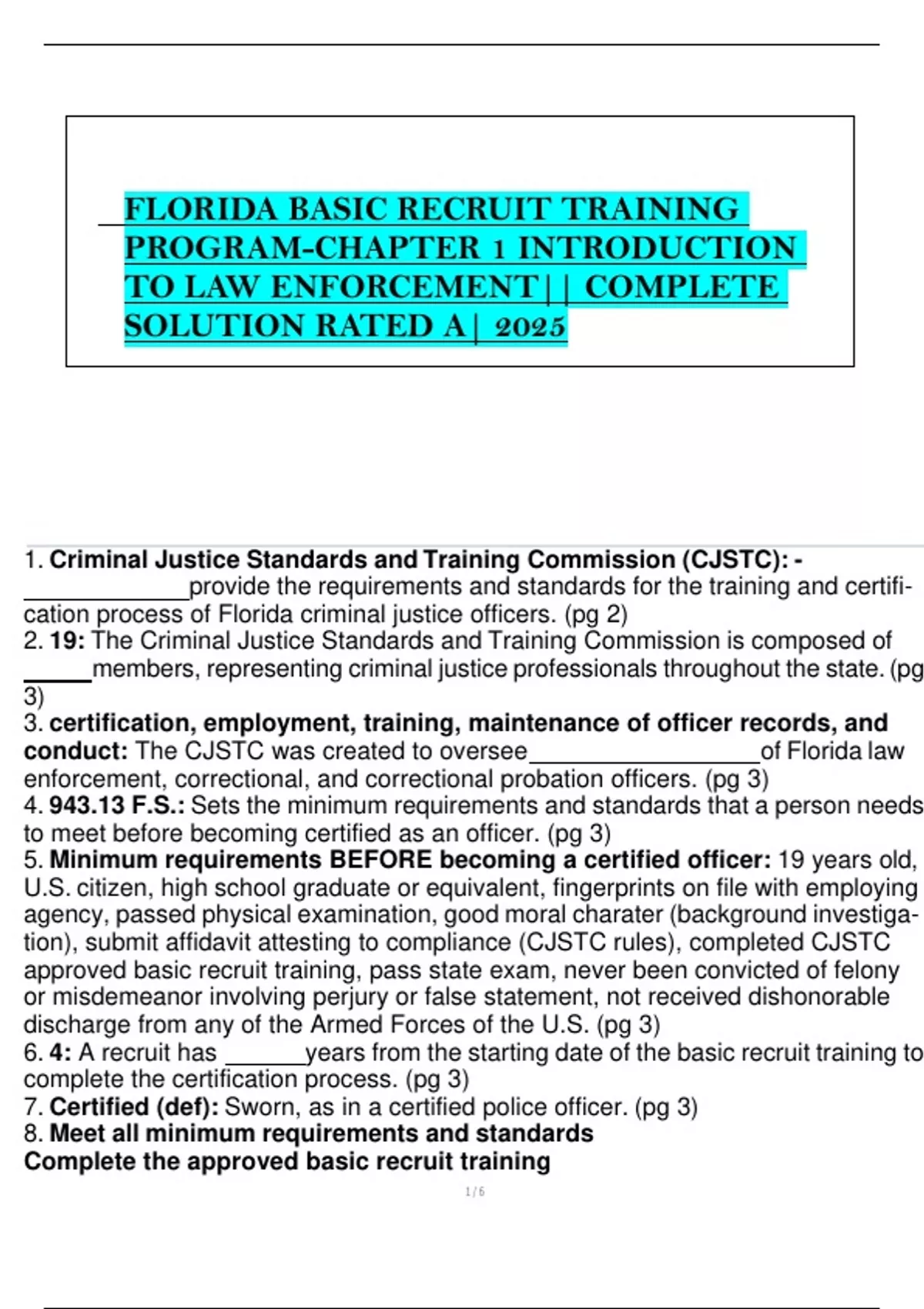 cation process of Florida criminal justice officers. (pg 2)